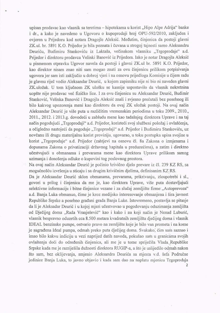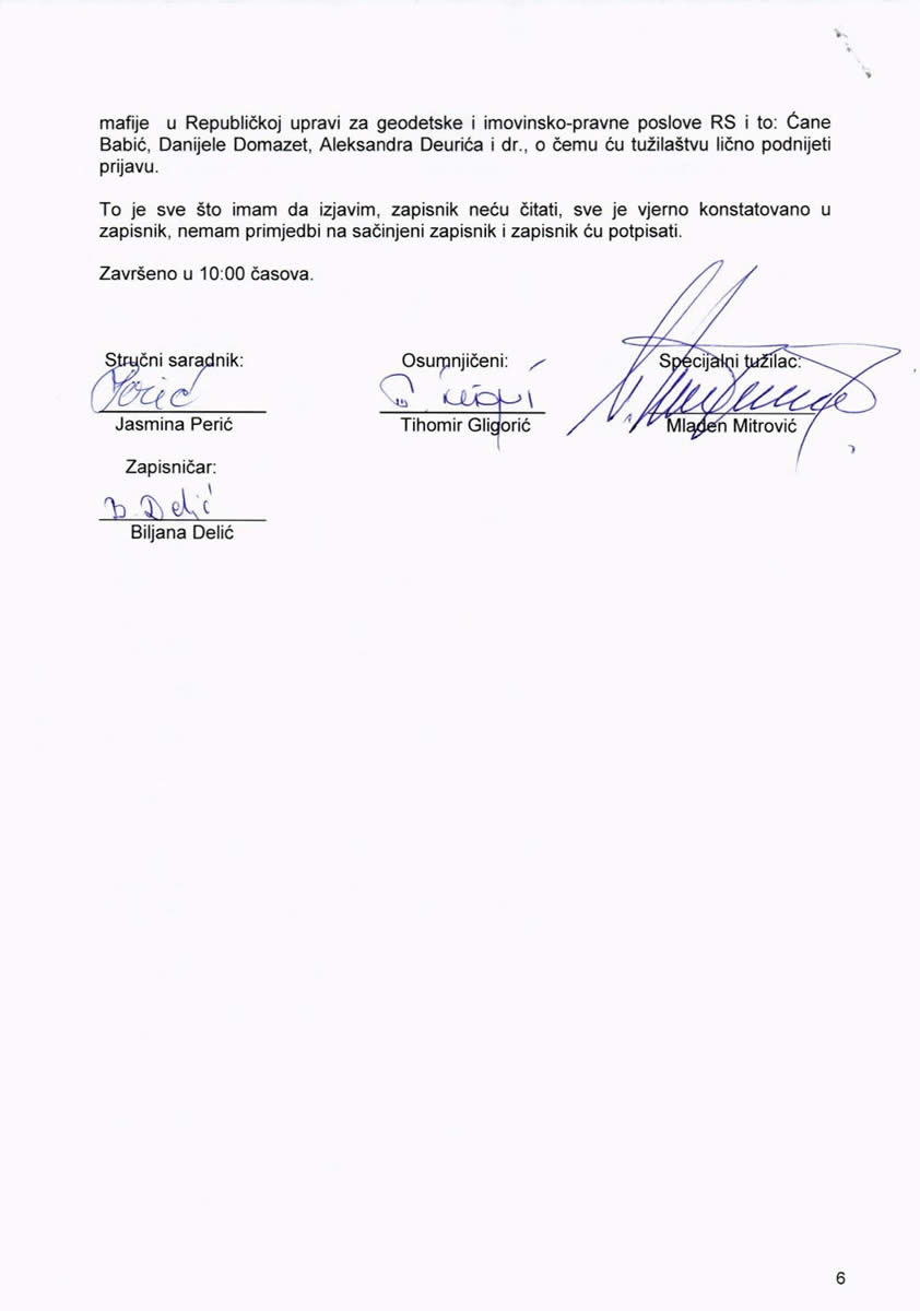 Da li će nekoga iznenaditi podatak da je ovaj isti Mitrović, očigledno pouzadan i dokazan kadar, potpisao akt kojim me obavještava da je krivična prijava, koju sam podnio protiv Budimira Stankovića i Aleksandra Deurića u predmetu „Trgoprodaja“ (i dalje niko ne traži 1,5 milion KM od Budimira), prosleđena Okružnom tužilaštvu Banja Luka, jer se ne radi o krivičnom djelu iz nadležnosti Specijalnog tužilaštva.